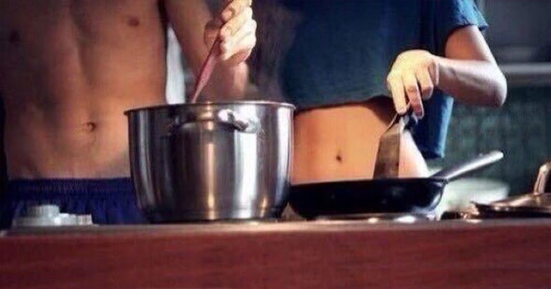 כאשר אתם מבשלים למען האהובים עליכם (והאוכל גם יוצא טעים), אתם מראים להם כמה אתם אוהבים אותם. אז תראו האחד לשנייה עד כמה אתם אוהבים ותכינו יחד ארוחה מדהימה, טעימה ויצירתית ותתענגו על הזמן יחד. דבר נוסף שהתגלה בסקר הנ"ל הוא: ש-15% מהאמריקאים מודים שהם מבשלים ללא בגדים. כמובן שלא מומלץ להכין כך אוכל מטוגן..