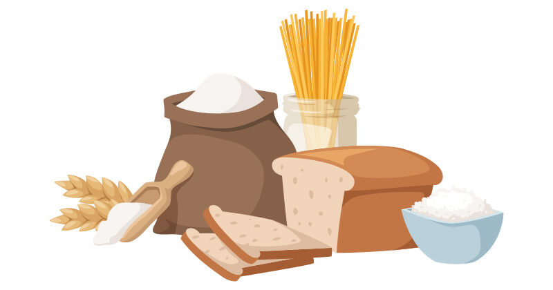 פיצה, בורקס, פסטה מקמח לבן, לחם מקמח לבן, אורז לבן, קמח לבן, מלאווח, ג'חנון, פתיתים מקמח לבן, עוגות ועוגיות מקמח לבן, מאפים שונים מקמח לבן, סוכר לבן, סוכרים מעובדים ומלאכותיים וכדומה.