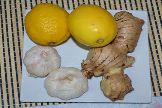 תחילה, תשטפו את הלימונים, השום והגי'נג'ר היטב. חיתכו את הלימון לחתיכות, תסירו את הקליפה של השום והג'ינג'ר ותערבבו את כל המרכיבים יחד בבלנדר. לאחר מכן, תעבירו את התערובת אל תוך מחבת וחממו אותה. תוסיפו מים ותערבבו עד שהיא רותחת ומיד כבו את האש. אחרי זה, תורידו את התערובת מהגז ותנו לה להתקרר. תערבבו ותמזגו את התרופה אל בקבוקי זכוכית. תאחסנו את הבקבוקים במקרר.