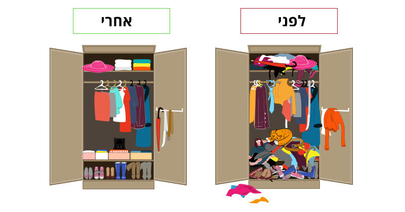 כשיש יותר מידי דברים חומריים במרחב שלנו, הם גורמים לנו לעומס על המוח ולתחושה, שיש לנו יותר מידי מה לעשות. פינוי המרחב או ארגונו מחדש, יסייעו לכם להפחית את תחושות הלחץ והמתח ויאפשרו לאנרגיה לזרום בקלות.